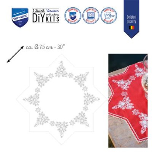 Tags: vervaco borduurpakket, tafelkleed borduren, voorbedrukt tafelkleed, tafelkleed met kant, borduurpakket, frans knoopje, platsteek, spansteek, steelsteek, DMC garen, geconfectioneerd, complete set, borduurstof, matig gemakkelijk, borduren 1 kleur, borduurpakket kerst, borduren voor kerst