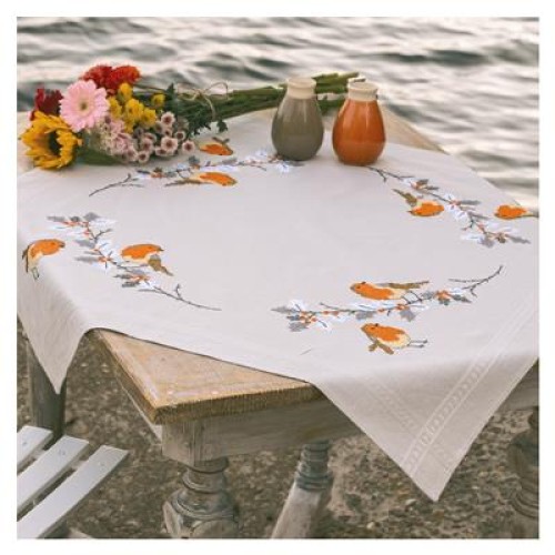 Vervaco Borduurpakket Roodborstjes Tafelkleed