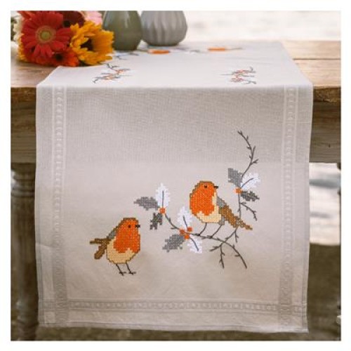 Vervaco Borduurpakket Tafelloper Roodborstjes